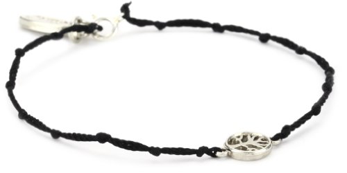 Ettika Silver Colored Tree Of Life Charm Black Knotted Silk Thread Bracelet