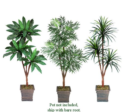 Three 6' Triple Head Artificial Trees: Bird Nest + Phoenix +Yucca, With No Pot,